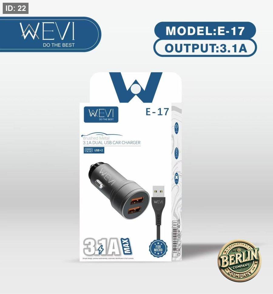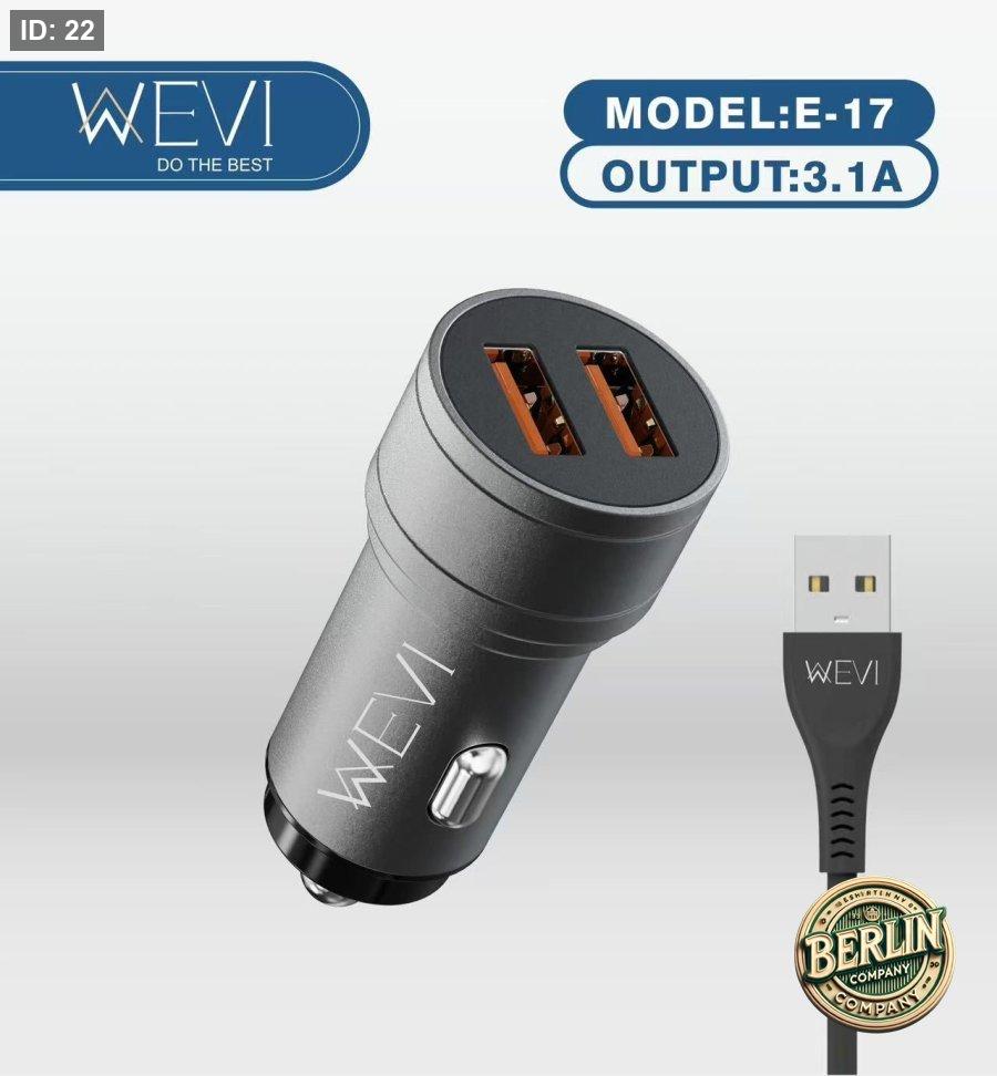 استمتع بشحن سريع وآمن أثناء القيادة مع شاحن السيارة WEVI 3.1A المصنوع من المعدن المصقول بتصميم أنيق ومتين.